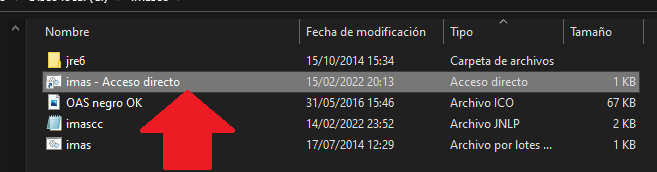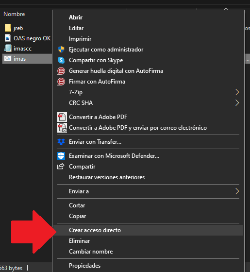 Para ello situados encima de este archivo IMAS (Archivo por lotes) pulsaremos el botón derecho de nuestro ratón y elegiremos la opción de «CREAR UN ACCESO DIRECTO».