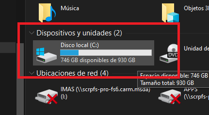 (2) Seleccionar disco local «C:».
