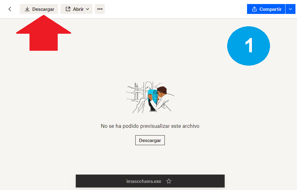 - Llamará al DROPBOX, este le solicitará REGISTRARSE o DESCARGA DIRECTA, pulse DESCARGA DIRECTA.