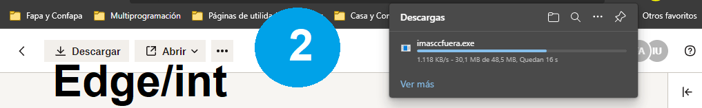 Dependiendo de nuestro navegador (Intener Explorer, Edge o Google Crome) nuestra pantalla nos mostrará una barra de progreso y tiempo estimado de bajada del fichero.