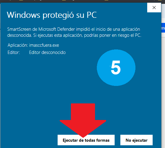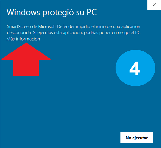 Debe pulsar la opción de MAS INFORMACIÓN, de pulsar por error No ejecutar, el proceso se cancelará y tendrá que realizar de nuevo todos los pasos anteriormente descritos.