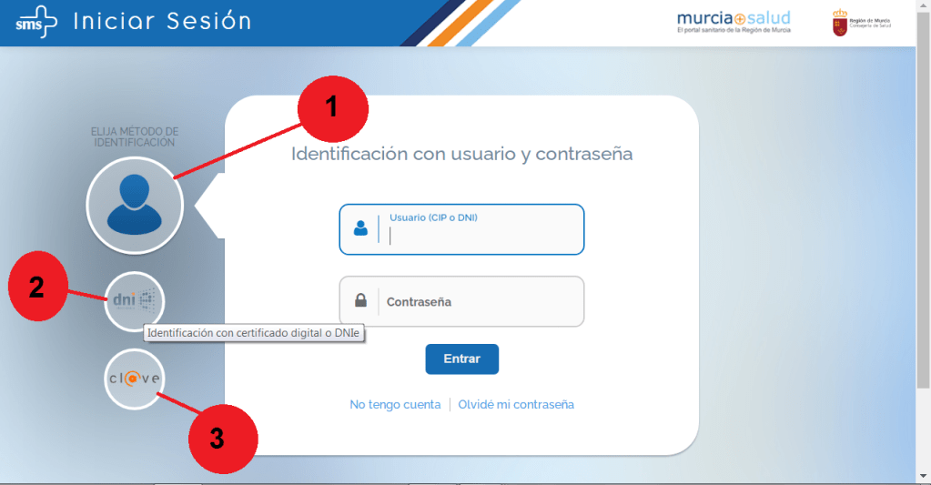 Pulsaremos INICIO DE SESIÓN donde nos llevará a una pantalla para elegir el sistema de acceso que deseamos utilizar: