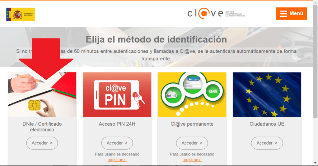 Pulsaremos (2) si lo que deseamos es entrar con nuestro DNI electrónico.