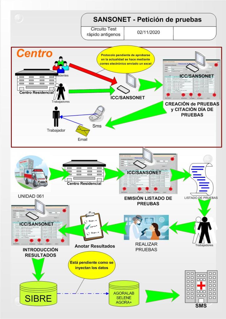 * En las pruebas de Laboratorio, en los laboratorios introducen los resultados para enterarnos nosotros y lo cosen al historial médico del trabajador, en las pruebas en nuestros centros, seremos nosotros los que introduzcamos los resultados en Sansonet para que se cosan al historial médico del trabajador.