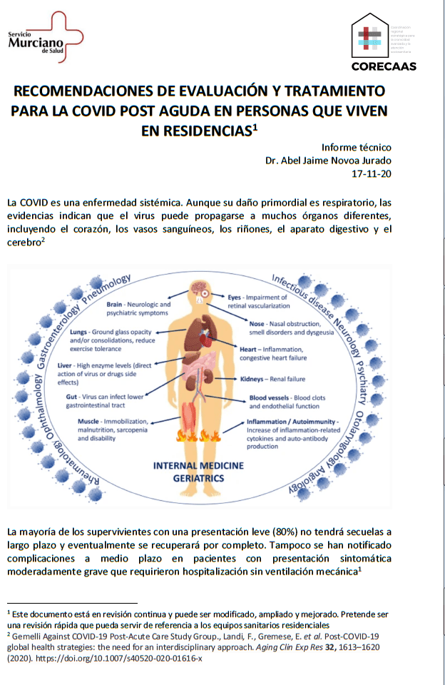 RECOMENDACIONES DE EVALUACIÓN Y TRATAMIENTO PARA LA COVID POST AGUDA EN PERSONAS QUE VIVEN EN RESIDENCIAS1.