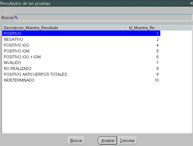 (3) TIPO DE RESULTADO. Le indicaremos el resultado obtenido, de la listad de los posible dependiendo de la prueba realizada. En el caso de los antígenos será POSITIVA o NEGATIVA.