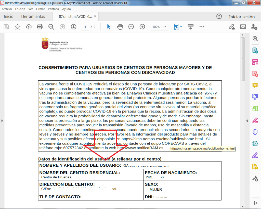 – Dni, nombres y fecha de nacimiento de los residentes a vacunar.