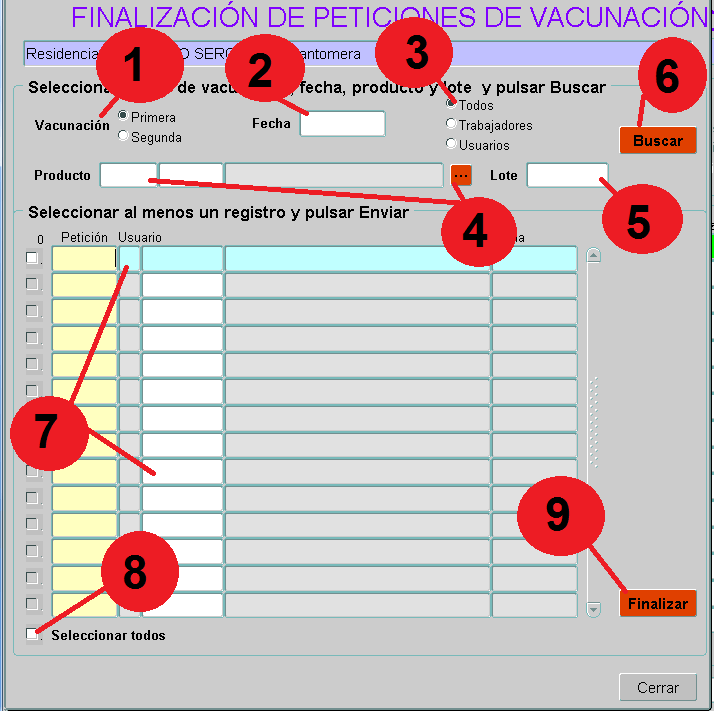 Para ello, debe volver a generar una convocatoria de la misma fase, para el mismo día, (¿Cómo se prepara una convocatoria?), le aparecerán de nuevo todos los residentes y trabajadores que no están incluidas en esta convocatoria y que han autorizado, selecciónelos de nuevo e incluyalos.