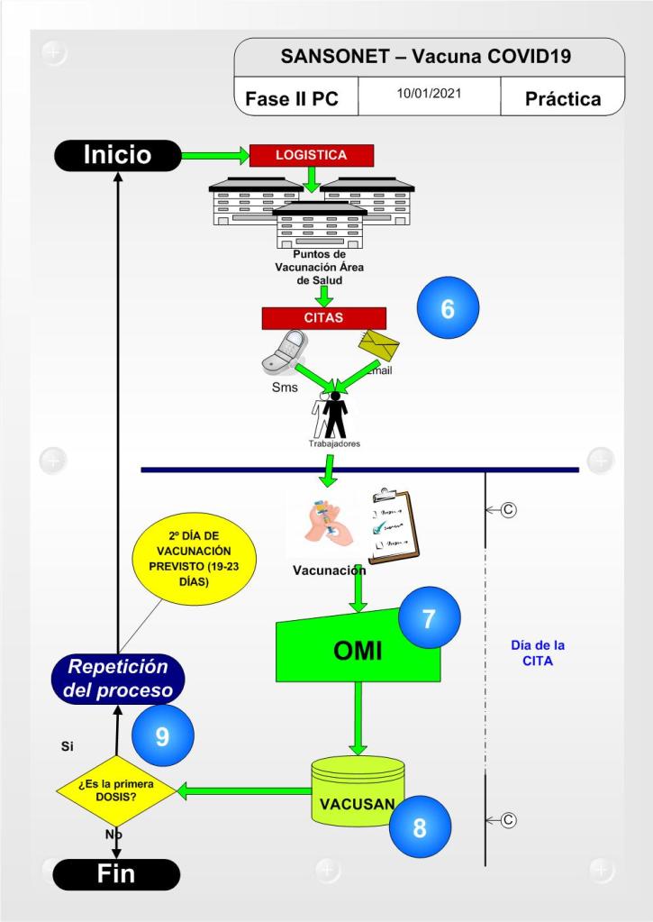 Completada la FASE I, los puntos de Salud Pública destinados a Vacunación, procederán a citar a los profesionales a estos puntos y a vacunarlos.