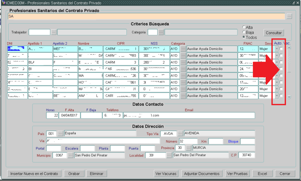 (3) ENVÍO DE DATOS AL SERVICIO DE VACUNAS. Transcurrido 7 días el Imas enviará al Servicio de Vacunas un excel de todos los profesionales al cuidado que hay censado en SANSONET, donde se le indica los que autorizan y los que no autorizan (para que no sean llamados). Es muy importante que hayan introducido los datos, ya que de otra manera este profesional no será citado por los puntos de vacunación.
