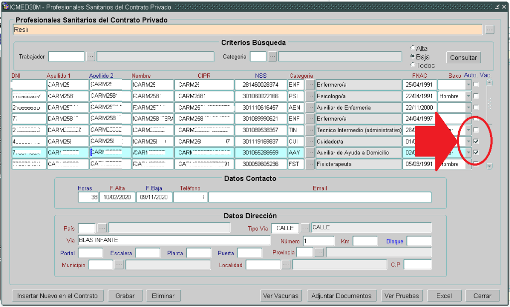 Dependiendo del protocolo tendremos que registrar las vacunaciones de los usuarios y trabajadores (Grupo I de Residencias, Grupo III y IV en Centros de Día), o solo los trabajadores profesionales al cuidado de personas dependientes (Grupo III, SAD, Centros de Menores, exclusión social y acogida).