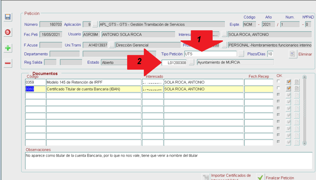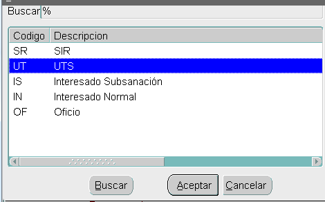 (1) TIPO DE PETICIÓN: habremos escogido o UTS o SIR.