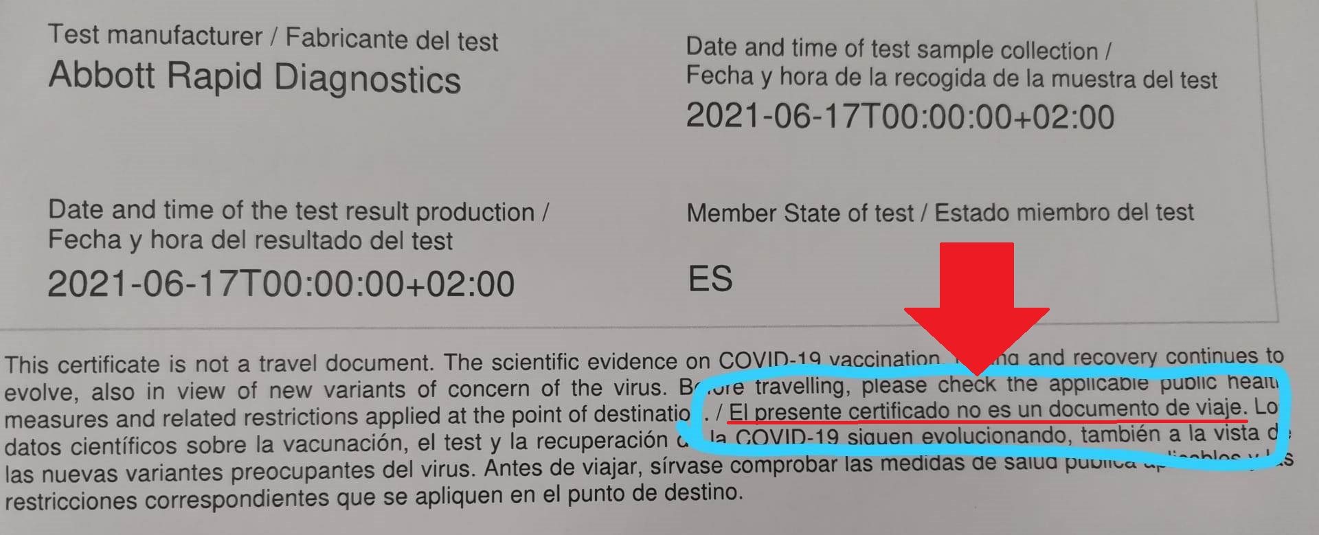 En el certificado aparece en español y en inglés «El presente certificado no es un documento de viaje». ¿Significa eso que este certificado no vale para viajar?