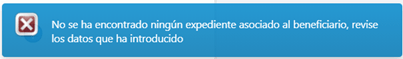 En caso de no encontrarse expediente asociado a dni del solicitante, se mostrará el siguiente mensaje: