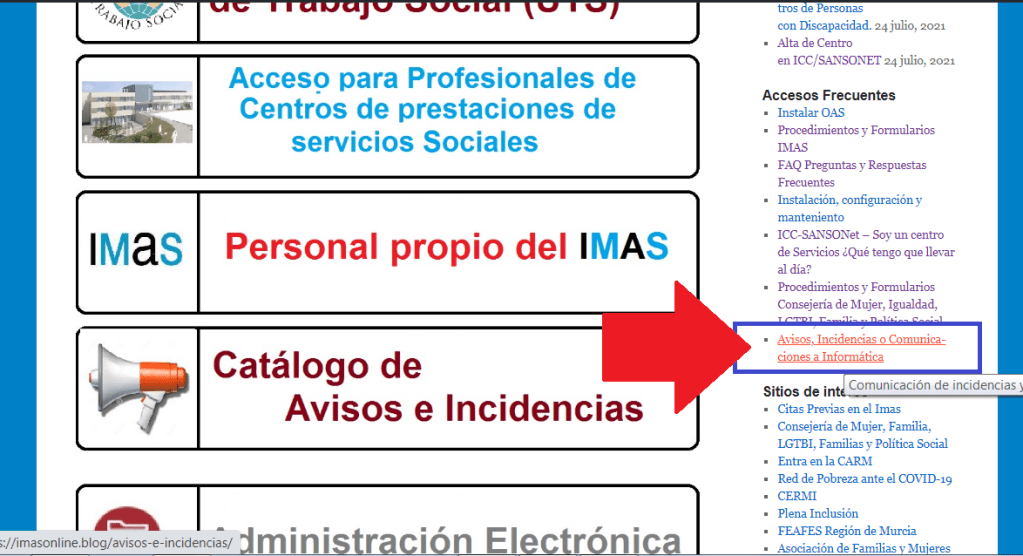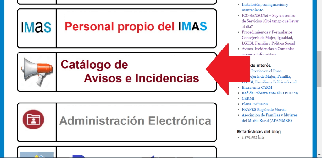 Estos enlaces nos llevarán directamente a una pantalla de catalogo de incidencias más habituales, de donde pulsaremos la opción deseada. Este catalogo es como sigue: