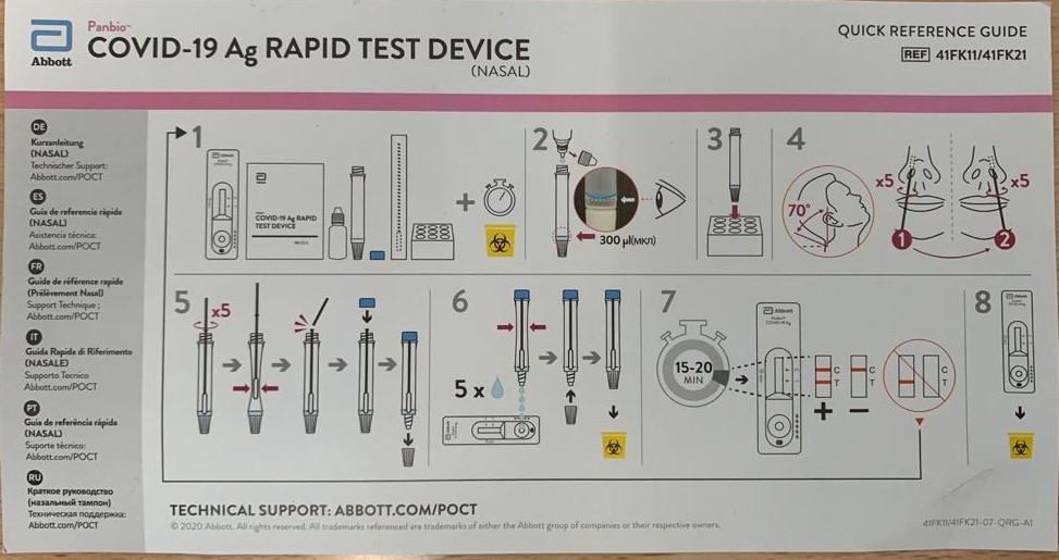 3-Se van a repartir nuevos test de antígenos, que se deben utilizar cuando hayan caducado los que tenéis disponibles de noviembre, pero en este caso son diferentes, ya que son “sólo” nasales. Las instrucciones para su uso son diferentes, adjuntamos pictograma de instrucciones (que van en cada caja). Insistimos, que debéis utilizarlos correctamente, ya que en caso contrario sus resultados no son reales.
