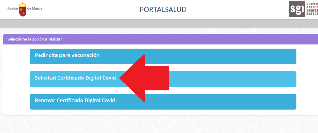 Paso 1. Elija SOLICITUD CERTIFICADO DIGITAL COVID