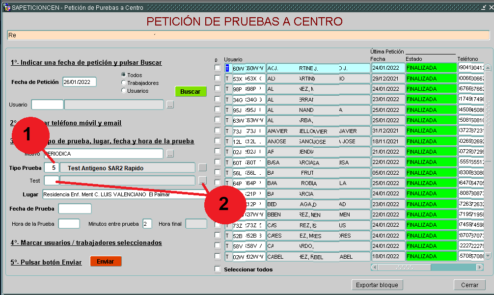 UNO . Eligiéremos el tipo de prueba (PCR, Antígeno, etc,,).