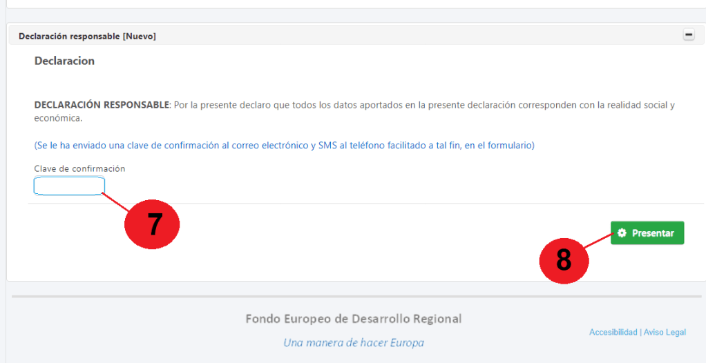Solo nos resta introducir este código de activación en la casilla indicada como CLAVE DE CONFIRMACION (7) para posteriormente pulsar el botón de PRESENTAR (8).