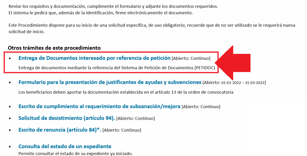 Si usted dispone de DNI o Certificado Electrónico, podrá entregarlo a través de SEDE ELECTRONICA de la CARM, lo encontrará en el procedimiento correspondiente, en el apartado Entrega de Documentos interesado por referencia de petición
