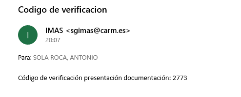 Terminado el proceso el sistema nos mostrará los archivo que hemos anexado mediante este proceso esperando que pulsemos el botón ENVIAR CÓDIGO DE VERIFICACIÓN.
