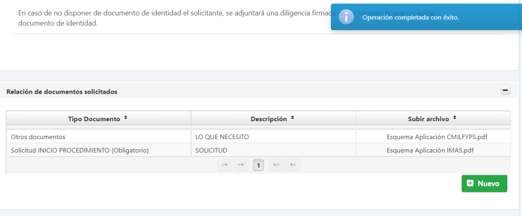 Pulsaremos el botón GUARDAR (11) para dejar grabada esta línea. De haberla grabado y deseamos eliminarla nos pondremos encima de ella y pulsaremos ELIMINAR (10). Finalmente nos mostrará las documentos que llevamos incorporados como justificación, pudiendo añadir nuevos documentos con el botón de NUEVO, o eliminando aquellos incorrectos.
