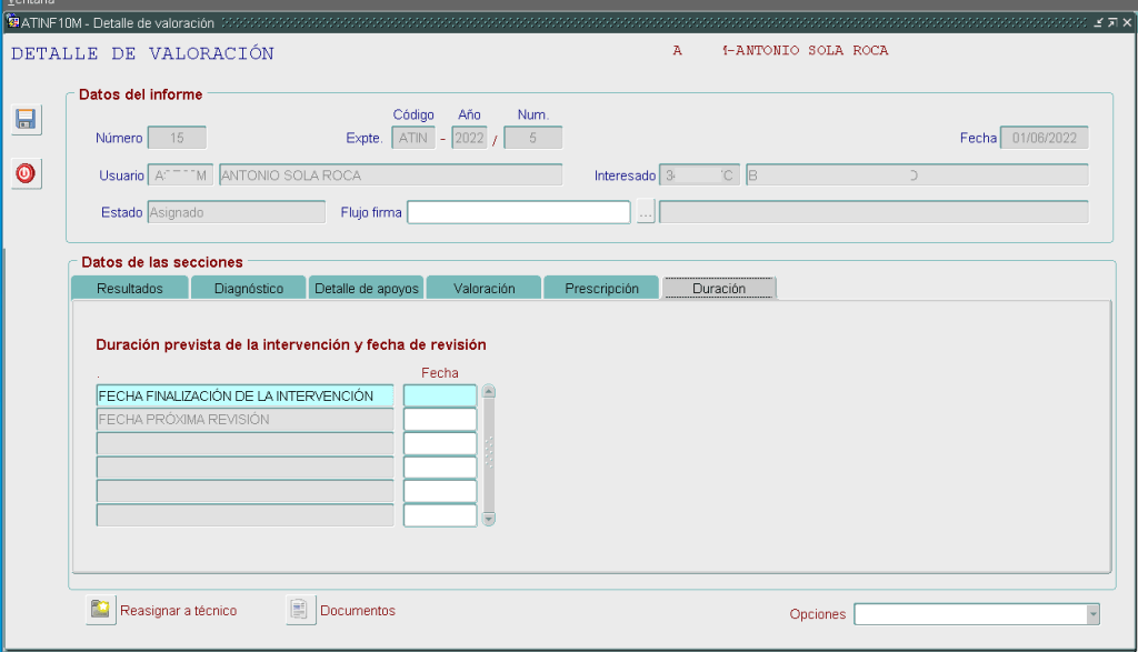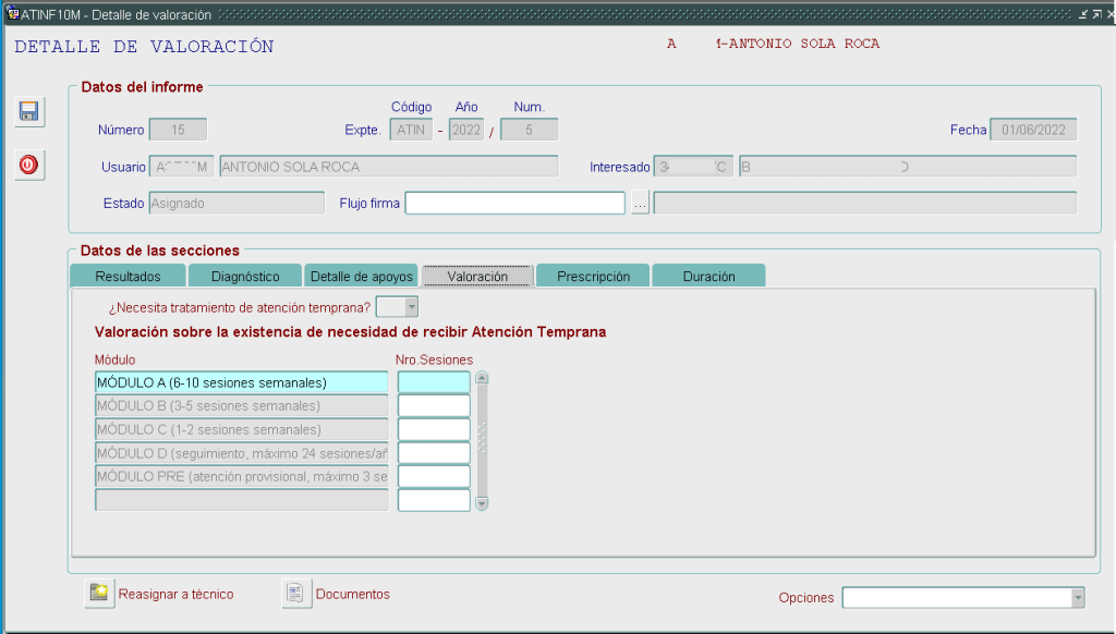 - Asignación al profesional: una vez determinado el equipo de valoración, el sistema buscará a los diversos profesionales asignados a dicho equipo, y asignará este caso al profesional marcado como director de ese equipo.