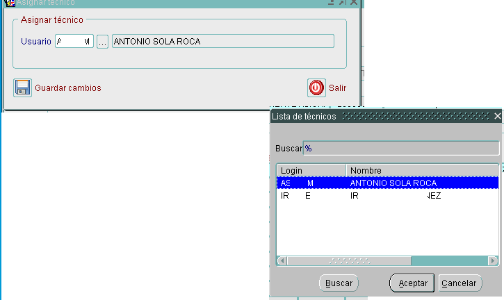 Como indicábamos anteriormente mediante este botón se realizan las asignaciones o reasignaciones de los profesionales. Para ello tenemos que tener al menos un informe seleccionado o más. Para seleccionarlo habremos marcado el check de selección del informe deseado (7). El programa nos mostrará: