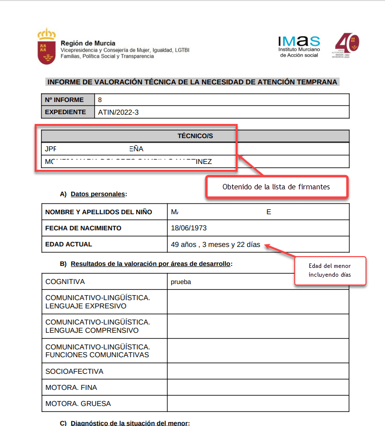 Al pulsar esta pestaña nos aparecerán todos los profesionales por los que ha pasado este informe. No todos serán los que firmen, ya que habrá profesionales que han recibido el informe para reasignarlo y no para completar alguna parte de él. Por ello, ANTES DE DESCARGAR EL INFORME PARA FIRMAR, es necesario indicar que profesionales de estos son los firmantes del documento.