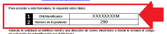Una vez ha recibido la carta, en ella dispone del identificador (1) y del número de su expediente (2). Con estos datos puede acceder al formulario de doble factor desde el siguiente enlace: