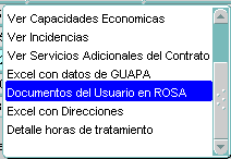Al desplegar el menú de opciones escogeremos la opción de DOCUMENTOS DEL USUARIO EN ROSA.