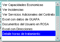 PASO 4. Introducir las horas de tratamiento. Con la finalidad de que los profesionales de los equipos de valoración de atención temprana de Educación puedan consultar el tratamiento que el niñ@ está recibiendo es necesario que se introduzca para cada niñ@. Para ello repetiremos los pasos anteriores: elegiremos el menú de OPERACIONES DIARIAS, elegiremos la opción de USUARIOS DEL CENTRO, nos situaremos en el niño en concreto y desplegaremos el menú de opciones eligiendo esta vez, Detalle horas de tratamiento.