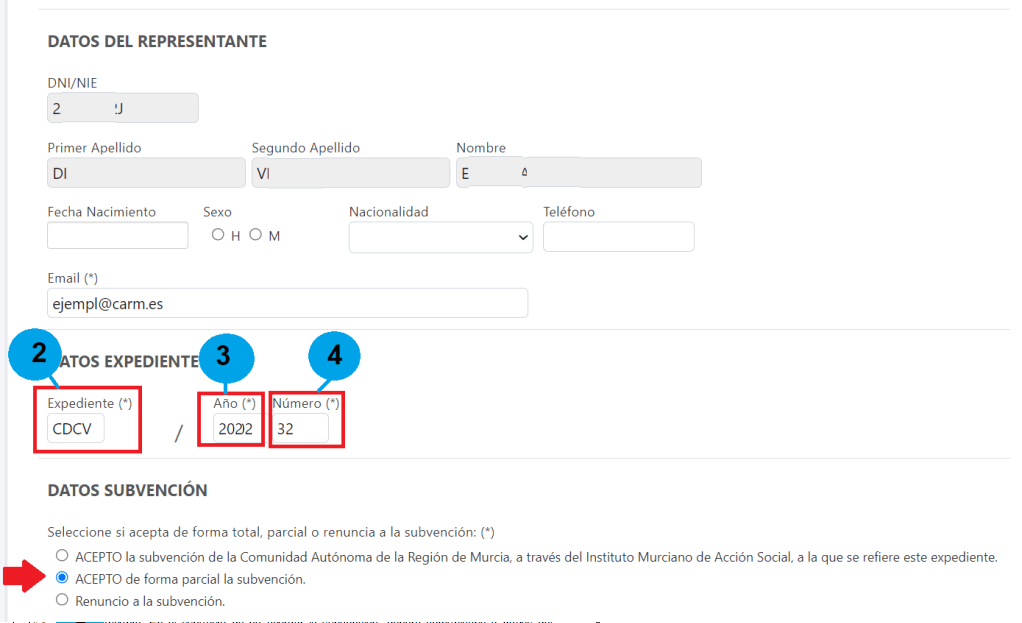 Tal y como decíamos en el apartado anterior, de haber elegido la opción de ACEPTAR PARCIALMENTE, el formulario le solicitará la cantidad que acepta de Gastos corrientes (5).