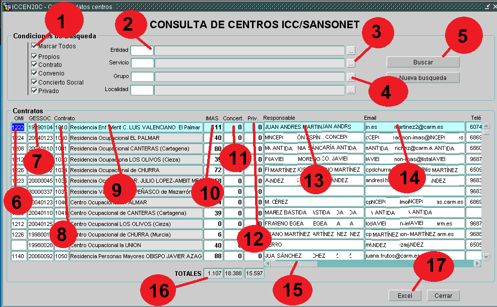 (16) TOTALES. del número de residentes según los criterios de búsqueda utilizados.