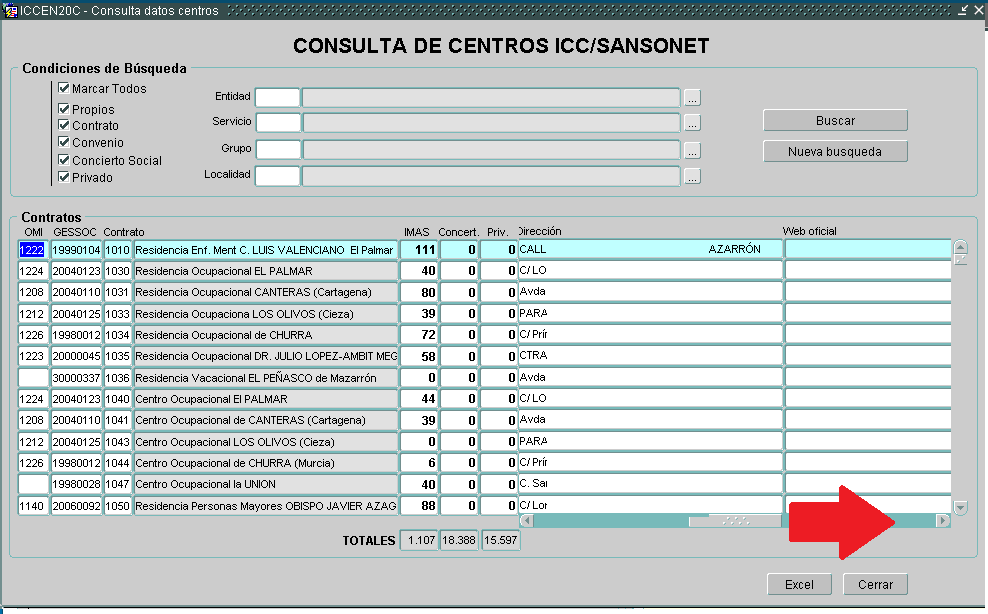 (1) TIPO DE CENTRO. Le indicaremos si los queremos con plazas exclusivamente pública (propios), si los queremos concertados en sus versiones (mediante contrato, concierto social o convenio con otras administraciones) o todos. Por defecto todos.