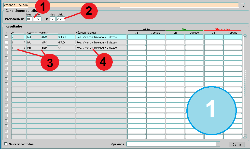 (1) PERIODO DE INICIO. Introduciremos el mes y año del mes de copago del mes a compara origen. En este caso Diciembre de 2022 (12/2022).