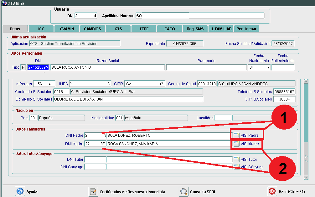 Pero también encontraremos los datos de identificación de sus progenitores, de su cónyuge, de su Tutor y de su Representante Legal.