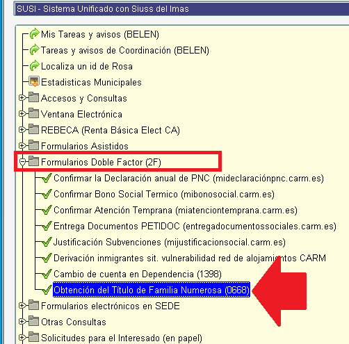 Ahora podemos acceder directamente desde VISI/SUSI/CORE al formulario de obtención del título, carnet o formato digital de Familia Numerosa.