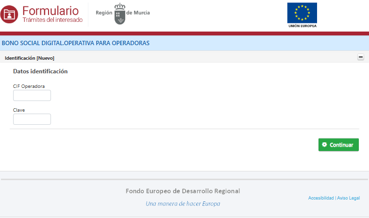Cada Operadora Registrada introducirá el CIF con el que se Registró y la clave facilitada.