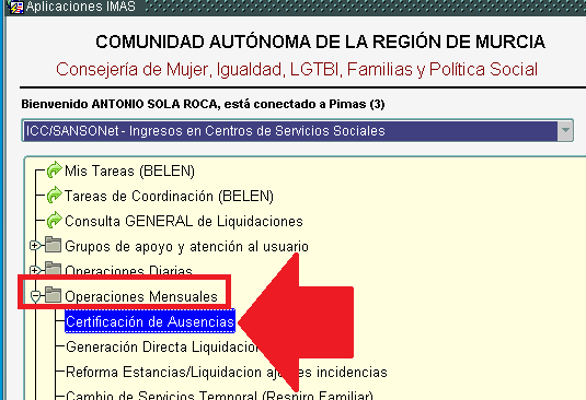 Para ello, una vez nos indique las liquidaciones que tenemos incidencias pendientes de liquidar, nos trasladaremos a la opción de CERTIFICACION DE AUSENCIAS, que encontraremos en nuestro menú de ICC en la opción de OPERACIONES MENSUALES.