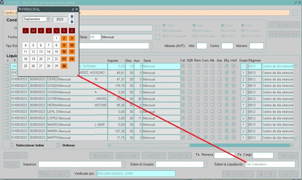 Ahora deberíamos saber los días que nuestra liquidación de plazas ocupadas nos indica, lo que llamamos DIAS LIQUIDADOS (Dl), para ello viajamos a nuestro zoom y..