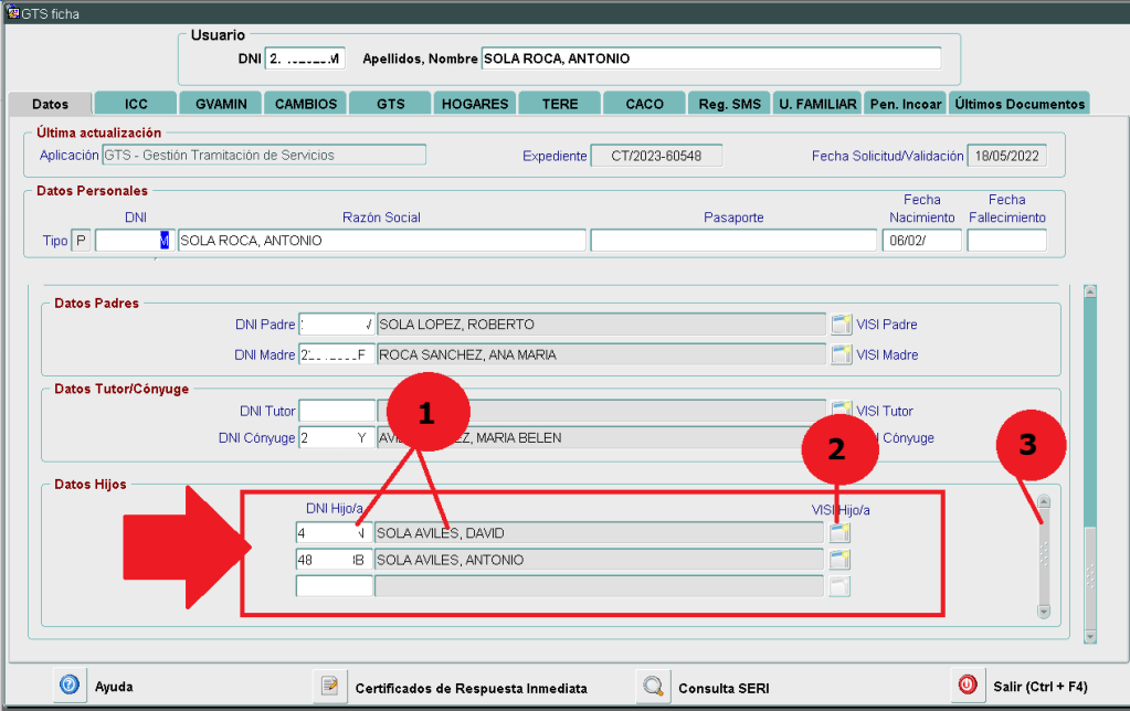 Ahora es posible viajar en el árbol genealógico descendiendo desde la persona consultada al mostrarnos todos sus descendientes directos. Esto es muy útil en los casos de expedientes de menores donde los presentadores de las solicitudes son los padres/madres, como el caso de la Atención Temprana.