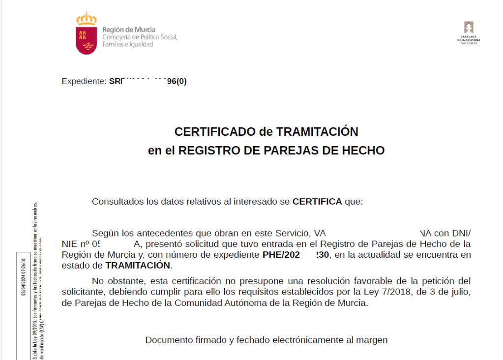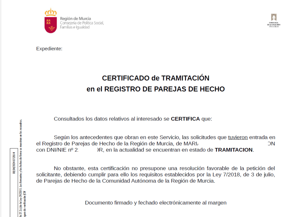 Dada la demanda de interesados en que se le certifique que tiene en trámite una solicitud de inscripción o cancelación en el Registro de Parejas de Hecho, hemos puesto a vuestra disposición este nuevo certificado.