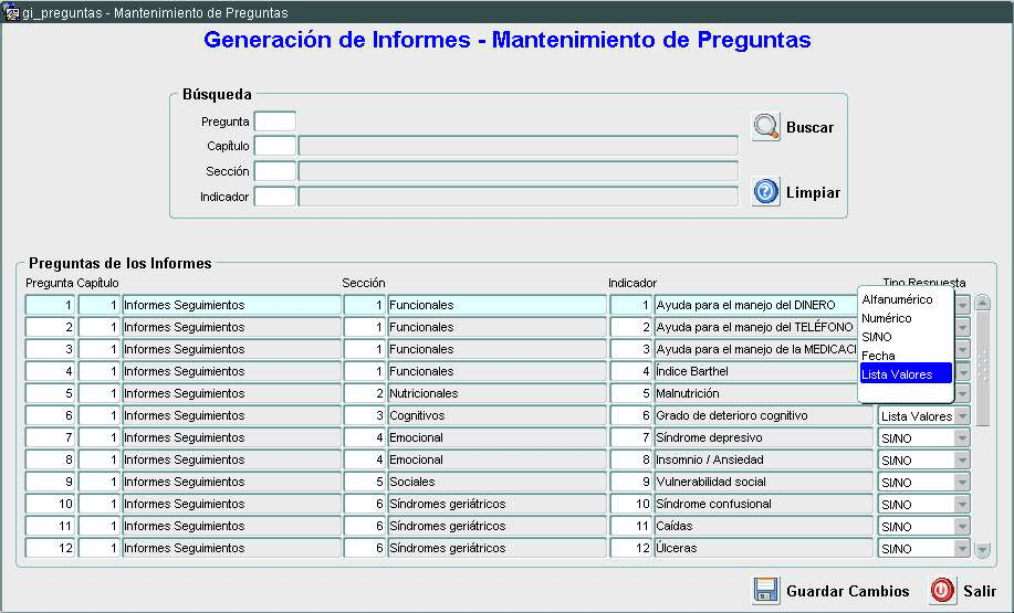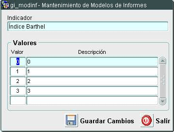 En el caso de que se trate de una pregunta cuya respuesta va a depender de una lista de valores, nos aparecerá un pequeño botón (V) que nos llevará a una pantalla donde especificaremos tanto los valores de las respuestas como las descripciones de las mismas.