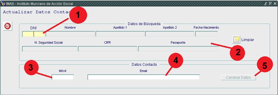 1. DNI: introduciremos el DNI de la persona sobre la que queremos realizar el cambio.