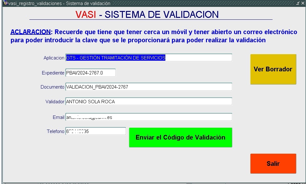 1. La validación integrada en el entorno (VASI). basada en un doble factor se hace dentro de la aplicación de gestión integrada, exigiendo realizarse en ordenadores que tengan en ejecución OAS, este es el caso de: