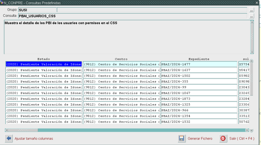 Al pulsar esta nueva opción nos saldrá un menú de Consultas Avanzadas a realizar. Eligiendo la deseada, obtendremos la consulta deseada exportándola en Excel.