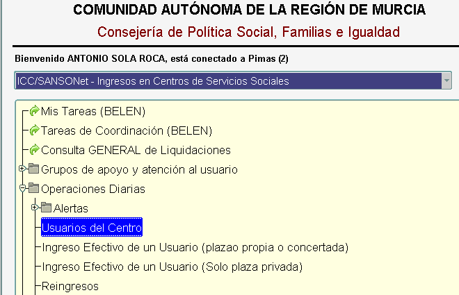 Para ello entraremos en nuestro menú, en la opción de OPERACIONES DIARIAS, USUARIOS DEL CENTRO.