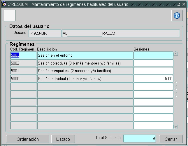Esto significa que una vez se llegue al tope mensual de sesiones establecidas por caso el sistema no dejará introducir ninguna sesión más de las establecidas por el módulo correspondiente. Indicándonos según el caso, que no nos deja introducirlas porque sobrepasamos el tope mensual, o porque no hemos definido su comportamiento habitual.