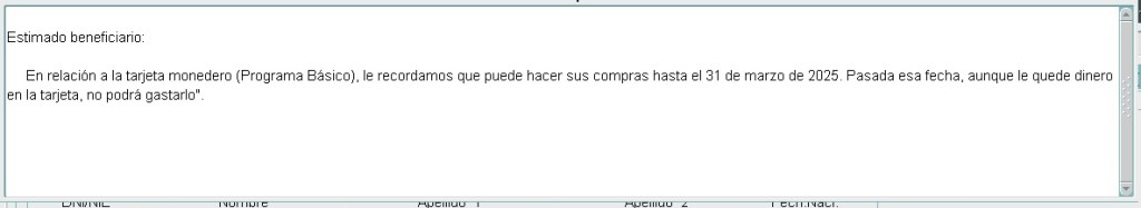 La actual tarjeta distribuida durante este el año 2024, caducará (no podrá ser utilizada en ninguno de los comercios adheridos al proyecto) el próximo día 31 de Marzo de 2025, aunque todavía le quede saldo disponible.